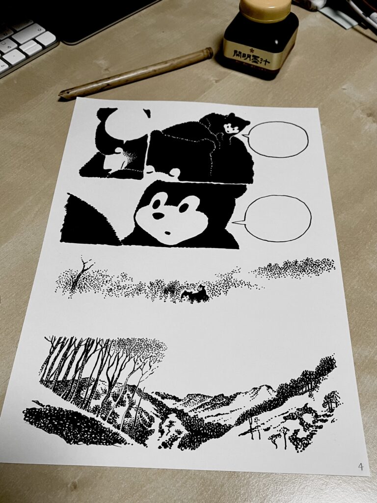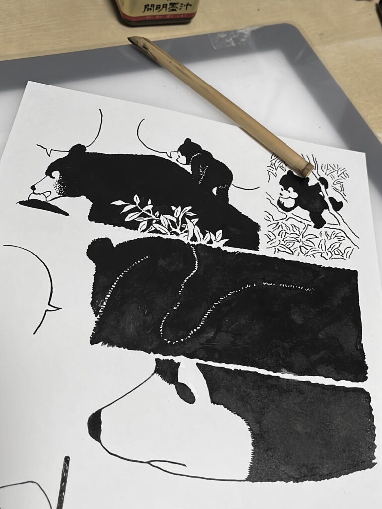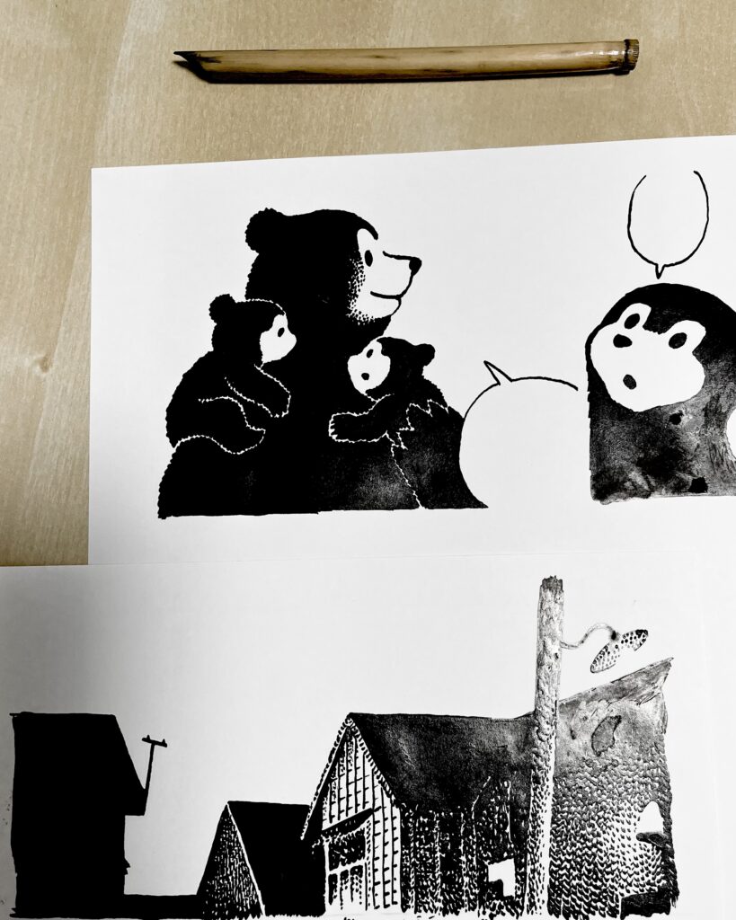 クマが恐ろしい害獣であると同時にかわいいキャラクターでもあるという二重性に自分はやや固執しているため、どんな世の中になったとしても自分が描くものは誰かにとって不謹慎にあたりうると思います。せめて誰かにとっておもしろいクマであったらいいなと思います。